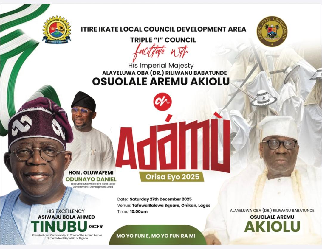 The Executive Chairman of Itire ikate Local council Development Area thereby facilitates with His Imperial Majesty Alayeluwa Oba(Dr.) Riliwanu Babatunde; Osuolale Aremu Akiolu on this year 2025 Orisa Eyo Festival.