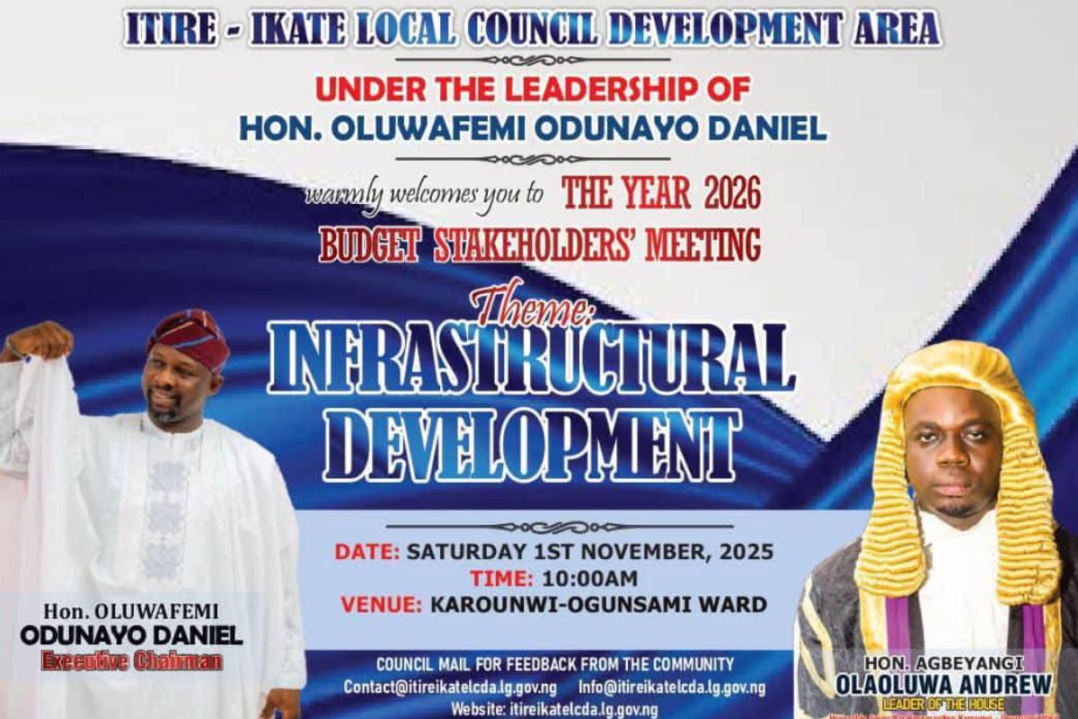 In continuation of the ongoing series of Stakeholders’ Consultative Meetings across the seven wards of Itire–Ikate LCDA, the Year 2026 Budget Consultative Session for Karounwi/Ogunsanmi Ward was successfully held today under the purposeful leadership of Hon. Oluwafemi Odunayo Daniel, Executive Chairman of the Council.